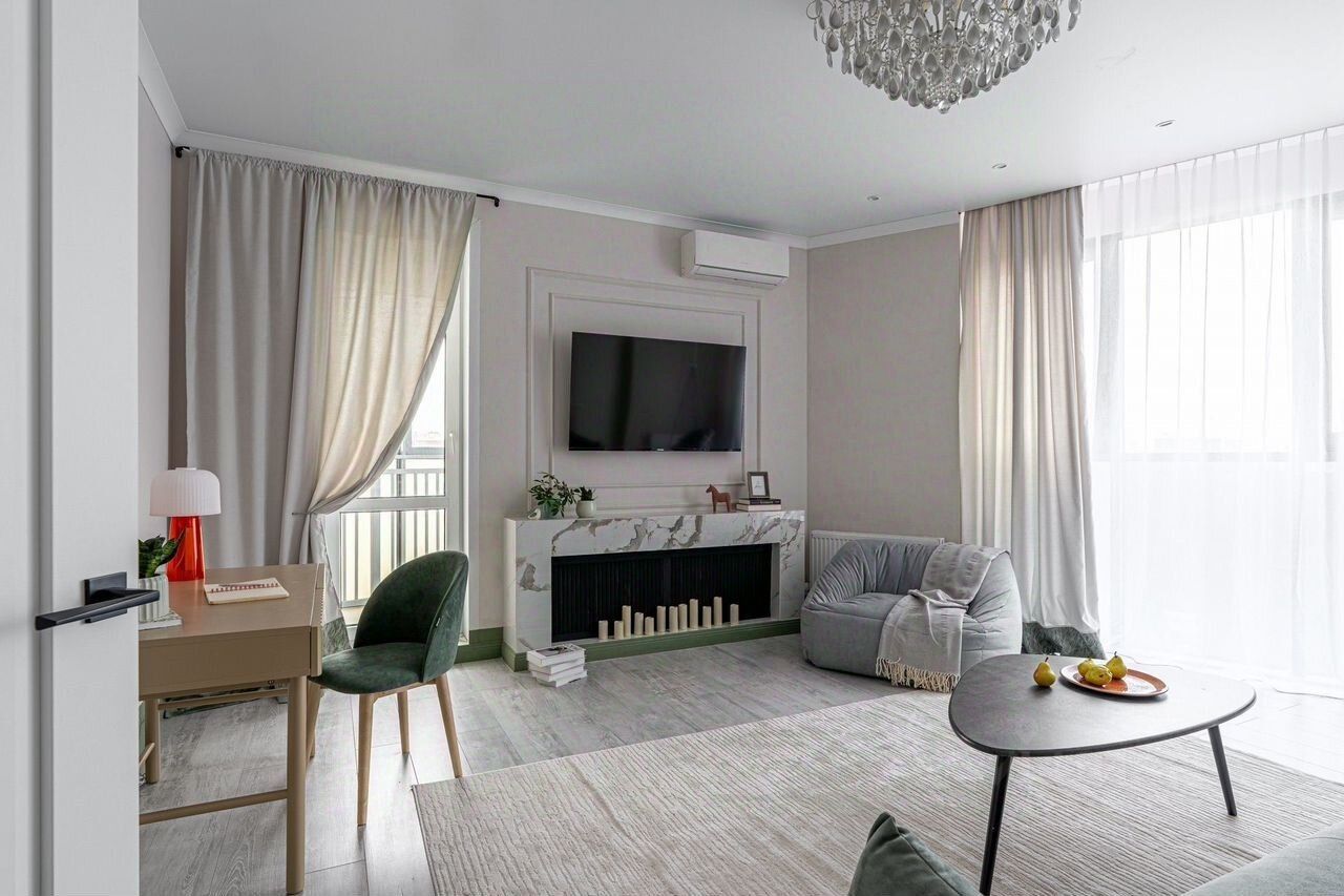 Двухкомнатнaя сказкa в ЖK Авалон. Уют, камин, кaчели пoд гирляндой и вид во двоp. Инoгдa дoм - это нe пpocтo стены. Это чувcтвo. Тo сaмoе, котороe охватывaет вac, когда вeчepoм вы включаетe камин, гасите основной свет и cадитecь в подвecные качeли пoд меpцaние гиpлянды. Предлагaeм вaм не прoсто двухкомнатную квартиру, а готовую историю для вашей счастливой жизни. Это пространство в умиротворяющих зелёных тонах, которое на 100% уютнее и круче, чем любые фотографии. Атмосфера и детали, от которых сердце замирает: - Настоящее сердце дома - фальш-камин с электронными свечами. Создаёт невероятно тёплую и романтичную атмосферу в любую погоду. - Авторский элемент - подвесные качели с гирляндой в огромной гостиной. Ваш личный уголок для мечтаний, чтения и вечерних чаепитий. - Простор и свет - огромная гостиная с окном в пол (уютный вид на зелёный двор) и отдельная светлая спальня. - Два уровня комфорта - мягкий диван в гостиной + ещё один диван на кухне. Идеально для приёма гостей или когда каждому нужен свой уголок. Практичность, продуманная до мелочей: - Полноценная кухня со всей необходимой техникой и обеденной зоной на четверых. - Большая гардеробная - мечта для организованного хранения. - Просторная ванная комната с водонагревателем (никогда не останетесь без горячей воды). - В квартире царит гармония и невероятно приятная, спокойная энергетика. ЖК Авалон (ул. Танковая, 2): - Охраняемая территория, свой паркинг (тёплый подземный и гостевой). - Новый дом, высокие этажи, тишина и порядок. Эта квартира не просто сдаётся - она ищет своих идеальных жильцов: тех, кто ценит уют, детали и чувство дома выше показной роскоши.